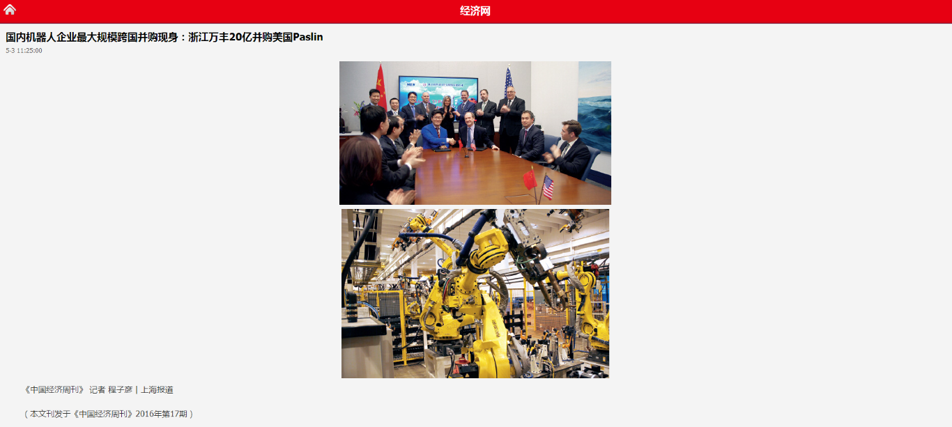 【中國經濟周刊】國内機器人?企業最大規模跨國并購現身:南京萬&豐20億并購美國Paslin
